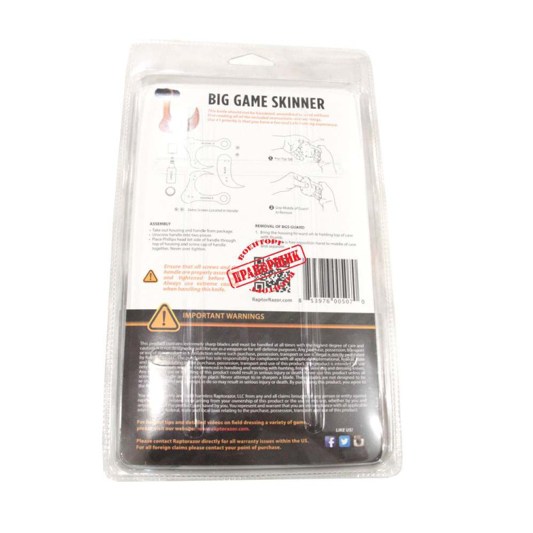 Ніж у багатьох випадках, під час полювання і т.д., є дуже важливою річчю, а тому потрібно, щоб ніж характеризувався хорошою якістю і надійністю. Ножі від даного виробника з США відомі відмінною якістю використовуваних матеріалів, і ніж Orange Lightweight Big Game повністю відповідає цьому стандарту. Клинок виготовлений з нержавіючої сталі високої якості, яка прекрасно тримає заточку і відрізняється міцністю і довговічністю. Зручна, ергономічна рукоять — металева. Ніж буде відмінним вибором для використання під час полювання, риболовлі, туристичних вилазок.