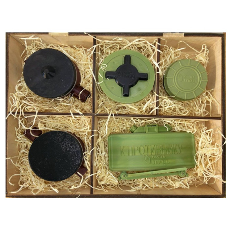 Комплект макетів вибухонебезпечних предметів Тип 3 — це інструмент, розроблений для покращення навчального процесу в межах військово-патріотичної підготовки. Макети розміщені у спеціалізованій дерев’яній скрині, створеній для зручного зберігання та транспортування моделей. Ця скриня забезпечує безпеку і довговічність макетів, що сприяє їх тривалому використанню в навчальних закладах.