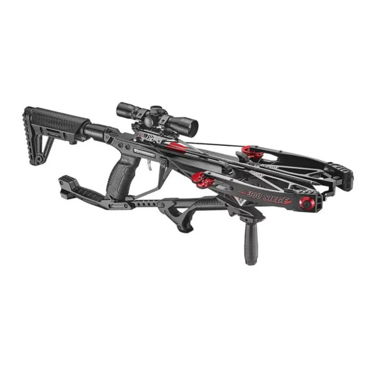 У базовій комплектації арбалет поставляється з трьома 15,5-дюймовими карбоновими болтами. Два з них з червоними лопастями, а один з білою лопаттю і наконечником масою 100 гран, що робить їх ідеальними для різних стрілкових завдань. Арбалет в комплекті забезпечений всім необхідним для комфортної та ефективної стрільби. Комплект включає в себе швидкознімний сагайдак, приклад AR з буферною трубкою, плечовий ремінь і сошку, забезпечуючи стрілку повний контроль і готовність до стрільби в будь-який момент. Крім того, захисні окуляри і мастильний віск в комплекті підвищують рівень безпеки і догляду за арбалетом.- Відгуки