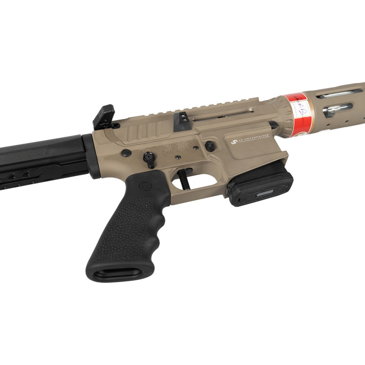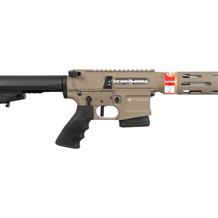 Карабін JP Enterprises CTR-02 калібру .223 Rem у кольорі «Койот» — сучасна зброя для змагань, що відзначається високою точністю та надійністю. З моменту свого появлення понад двадцять років тому, CTR-02 став фаворитом серед професійних стрільців, таких як Даніель Хорнер і Роббі Джонсон, завдяки своїм неперевершеним характеристикам. Основою карабіна є ресивер, виготовлений з алюмінію 7075-T6 авіаційного класу. Легка конструкція та фірмовий стиль JP з виразним магазинним колодцем дозволяють здійснювати швидку та зручну перезарядку, що особливо цінно в динамічних видах стрільби.