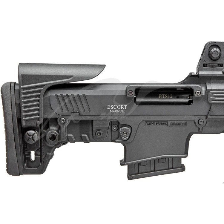 Рушниця Hatsan Escort BTS12 в 12 калібрі — напівавтомат, оснащений газо-поршневою системою перезарядки формату булл-пап. Виконана в концепції всієї серії Escort: характеризується вкрай компактними розмірами. Газовідвідна поршнева система відрізняється «лінійним» розташуванням, таким чином зменшується займана площа. Для захисту зовнішнього корпусу стволу застосовувалась авторська технологія виробника ThermoDefend, яка відповідає за ефективне поглинання тепла в процесі роботи автоматики. Крім того, всі стволи моделі BTS12 перед попаданням в продаж проходять додаткову перевірку в заводських умовах. Нижній ресивер виконаний з якісного, полегшеного полімеру і складається з: знімної рукояті пістолетного типу, частини цівки, еластичних протиковзких панелей і шахти під знімні коробчаті магазини. Рушниця володіє декількома особливостями: ручка взводу виконана так, що користувач може виконувати переорієнтацію «право-ліво»; приклад оснащений гребнем, який можна регулювати по висоті; на всіх сторонах присутні кріпильні планки; є знімна ручка для перенесення, з вбудованим механічним прицілом; для використання боєприпасів з різними навісками не буде потрібно виконувати будь-яких додаткових налаштувань. Крім того, використання еластичного потиличника і подовженої поворотної пружини призводить до зменшення впливу віддачі на корпус стрілка. Зброя виконана в полімер-керамічному покритті Cerakote. У комплекті присутні: знімні складні цілик і мушки, кріпильні точки QD для антабок. У підсумку можна констатувати: новинка 2020 року Hatsan Escort BTS12 — це сучасна, функціональна, компактна зброя, ще й за невисокою вартістю. Дана зброя безперечно буде цікавим придбанням внаслідок того, що модель відрізняється відмінними збройовими властивостями, а також адекватною вартістю.