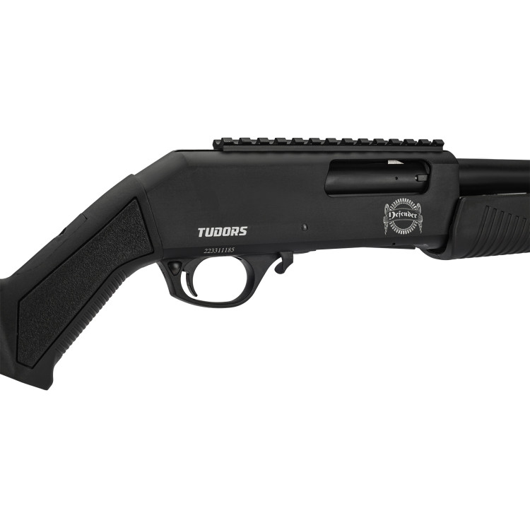 Рушниця Помпова TUDORS Defender для боєприпасів 12/76 — нова модель на ринку України, яка вигідно виділяється серед турецьких рушниць. А якщо порівняти за формулою «ціна-якість», то ця помпа буде краще більшості європейських і американських конкурентів. Відмінна якість збірки і комплектуючих гарантують надійність навіть в складних погодних умовах і тривалий термін служби. Рушниця призначена в першу чергу для самозахисту і з цієї точки зору порадує покупця прекрасним функціоналом. Цівка оснащене напрямними Пікатінні як на ствольній коробці, так і в нижній частині цівки, що дозволяють встановити будь-які необхідні додаткові аксесуари (ліхтарик, покажчик цілі, ручка перенесення і т.д.) в будь-якій необхідній комбінації. На цівці також виконане дуже якісне рифлення, що гарантує найвищу надійність утримання під час ведення стрільби і перезарядки.