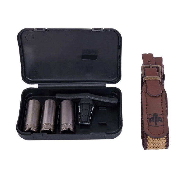 У комплекті постачання — набір із п’яти змінних дульних звужень (чоків), що дозволяють стрільцю адаптувати зброю під різні дистанції та типи мішеней. Ложе виготовлене з відбірного турецького горіха, що характерний високою щільністю й виразною текстурою деревини. Ергономічна форма ложі та її ретельна обробка створюють надійний і зручний хват. Для збереження рушниці під час транспортування чи зберігання виробник додає в комплект захисний чохол.