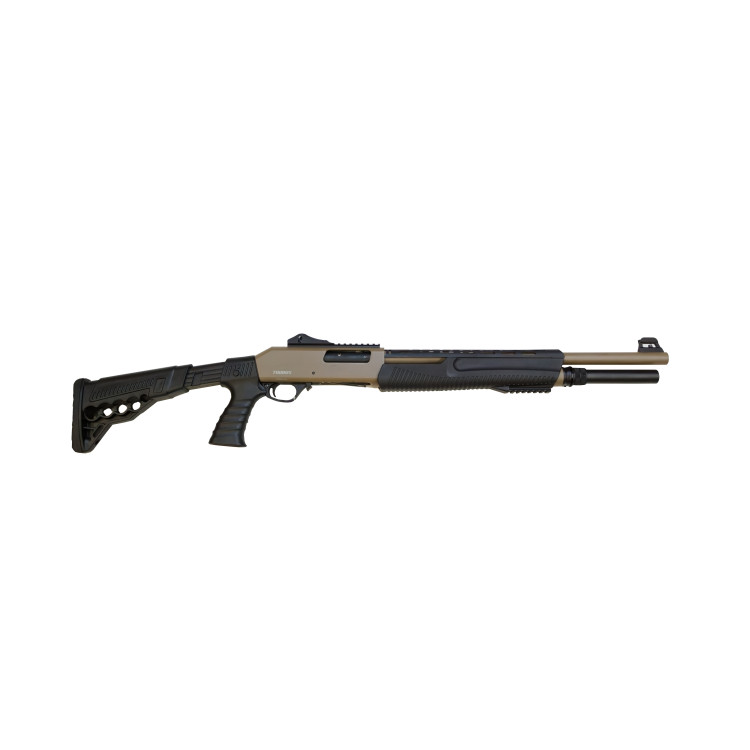 Помпова рушниця Tudors PA 101 12/76 KHAKI оснащена тактичним прикладом і цівкою, виготовленими з армованого полімеру. Приклад телескопічний, регулюється по довжині та має вбудований патронташ на чотири набої калібру 12/76. Гумовий затильник анатомічної форми знижує віддачу, а пістолетна рукоятка з виїмками під пальці та насічками забезпечує контрольований хват.