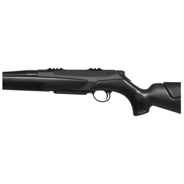 Карабін Merkel RX.HELIX Carbon Fluted являє собою модульну конструкцію, що поєднує скорострільність напівавтоматичної зброї з купчастістю класичної болтової системи. Його поздовжньо-ковзний затвор із поворотною личинкою з високоміцної сталі здійснює запирання казенної частини на шість бойових упорів. Відсутність потреби повертати руків’я під час маніпуляцій із затвором формує мінімальну амплітуду руху для стрільця. Інноваційна передача зусилля через зубчасті планки та шестерні забезпечує рекордно короткий цикл перезаряджання. Конструкція утримує стебло затвора всередині ствольної коробки на всіх етапах, що запобігає появі візуальних перешкод і зберігає концентрацію під час прицілювання.
