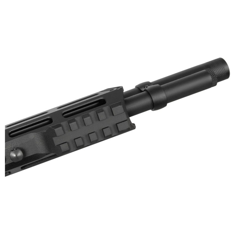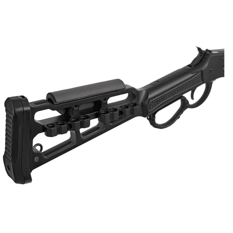 Конструкція включає двопозиційний запобіжник і підствольний трубчастий магазин. Компоновка передбачає скелетонізований приклад без пістолетної рукоятки та стандартні механічні прицільні пристосування, представлені регульованим ціликом і звичайною мушкою з червоним оптоволоконним елементом. Така конфігурація забезпечує послідовність дій при перезаряджанні та базову адаптацію при пристрілці.