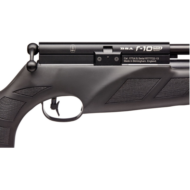 BSA R-10 mk2 Black Edition VC PCP — пневматична гвинтівка, створена для того, щоб задовольнити потреби любителів стрільби як в спортивних, так і в розважальних цілях. Крім того, вона є відмінним вибором для тих, хто хоче знищити дрібних садових шкідників і гризунів, безпечно і ефективно.