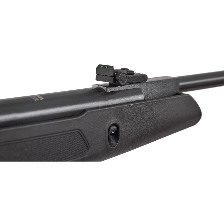 Ствол довжиною 45 см має нарізну структуру для більш високої точності. Початкова швидкість кулі досягає 305 м/с, що дозволяє вести точну стрільбу на значні дистанції. Оптичні прицільні пристрої оснащені світловолоконними вставками з контрастними кольорами, що прискорює наведення навіть при недостатньому освітленні. За необхідності на планку 11 мм можна встановити додатковий оптичний приціл, що розширює можливості гвинтівки для стрільби на дальні дистанції.
