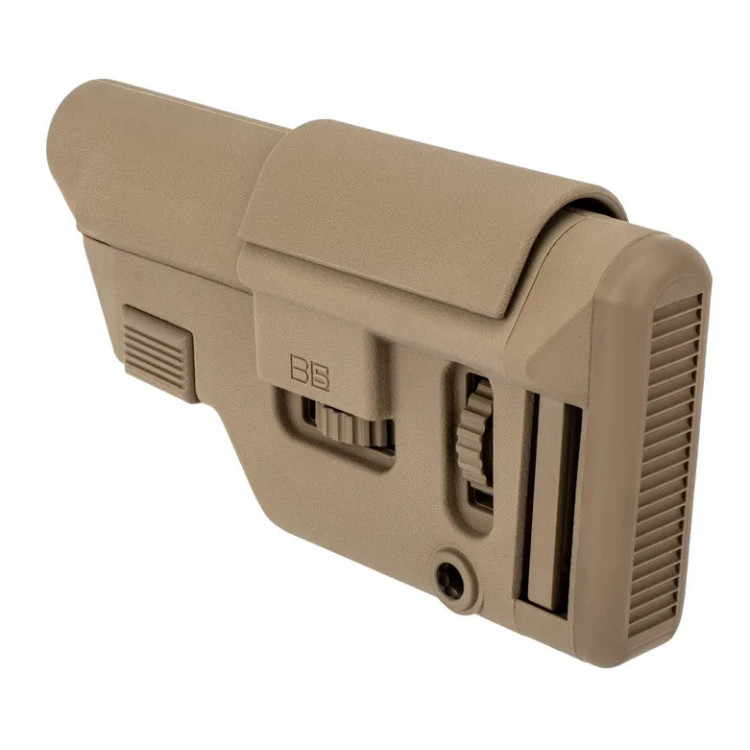 Складаний прецизійний приклад B5 Systems для AR-15 в міцній полімерної конструкції з армуванням Flat Dark Earth пропонує стабільність фіксованого приклада в поєднанні з універсальністю настроюваного приклада.