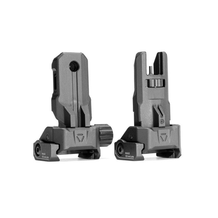 Комплект характеризується малою масою та низьким профілем у складеному стані, що унеможливлює зачеплення за екіпіровку або перешкоди під час транспортування. Сила затягування кріпильних гвинтів не повинна перевищувати 1,13 Н·м, що запобігає пошкодженню монтажних елементів і зберігає точність позиціонування. Приціли демонструють стійкість до тривалої експлуатації в різноманітних умовах та зберігають функціональність при частих маніпуляціях із механізмом.