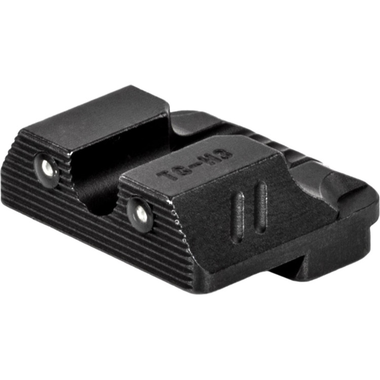 Для монтажу достатньо стандартного гвинта з головкою на 0,635 см. Ширина та глибина прорізу значно спрощують фокусування на цілі та скорочують час переходу між цілями, зберігаючи при цьому чітку картину поля зору. Тритієві вставки дуже ефективні за недостатнього освітлення, надаючи можливість оперативно знаходити ціль навіть за найгірших умов.