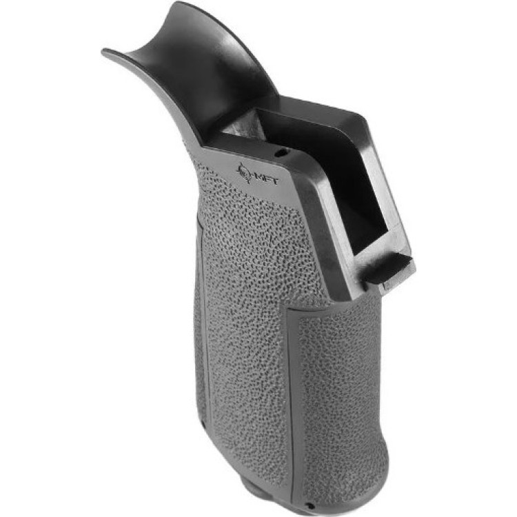 Рукоятка пістолетна до AR-15 MFT з 3 накладками може використовуватися для поліпшення ергономіки зброї і підвищення надійності його утримання. Матеріалом виробництва є високоміцний полімер, плюс виконане покриття в чорному кольорі. Поверхня виконана з текстуруванням, також є рифлення, завдяки чому рукоятка дозволяє забезпечити чудове зчеплення з руками стрілка в найскладніших умовах, будь то дощ, або ж стрільба в рукавичках. Рукоятка також оснащена спеціальною внутрішньою порожниною, що дає можливість здійснювати зберігання невеликих аксесуарів. Відкриття і закриття відсіку виконується дуже просто — завдяки зручній засувці. Рукоятка комплектується трьома накладками з текстуруванням, які використовується під пальці стрілка, а також трьома накладками, призначеними для задньої частини рукоятки.