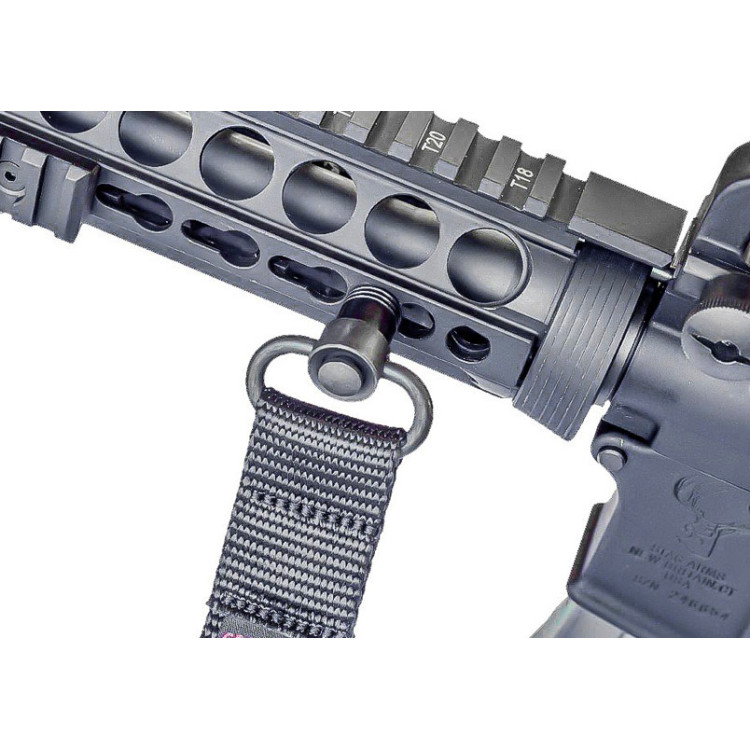 Конструкція включає в себе надійне кріплення для ременя, спеціально розроблене для системи Keymod. З кнопковою підставою, вона забезпечує утримання ременя, запобігаючи його випадковому зісковзуванню і гарантуючи безпечне носіння вашої зброї.