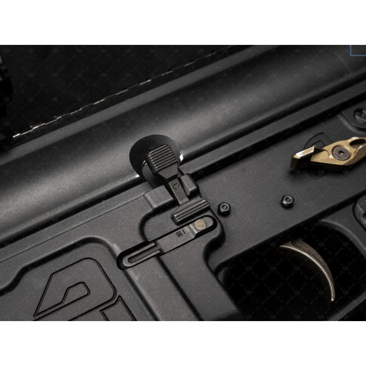 Збільшена кнопка скидання затримки затвора SI AR-10 – інноваційне покращення, що дозволяє миттєво скидати затримку затвора з легким та точним натисканням. Ця функція забезпечує швидке та надійне керування затвором, що є критично важливим для ефективної роботи зі зброєю. Завдяки значно розширеній поверхні нижнього важеля оператор отримує максимальну зручність і контроль при роботі зі зброєю. Це особливо важливо у стресових ситуаціях, де кожна деталь має значення.