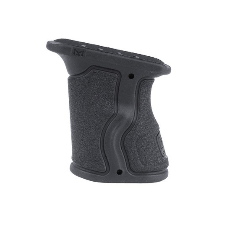 Поверхня рукоятки виконана з текстурованого гумового матеріалу, що забезпечує надійний захват навіть у умовах високої вологості або при потраплянні бруду на руки. Це критично важливо для підтримання контролю над зброєю в екстремальних ситуаціях. Розробка передбачає використання як альтернативного гібридного захвату "C", так і як низькопрофільної передньої рукоятки.