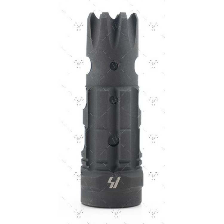 ДГТ Strike Industries-Triple Crown-Comp поєднує в собі переваги компенсатора і дульного гальма, забезпечує стрілку унікальний баланс стабілізації і контролю віддачі. Ця інноваційна конструкція створює виключно гармонійний вплив на динаміку зброї. Оснащений верхніми газовими отворами, знижує відчутну віддачу і підйом дула, забезпечуючи більш точні і стабільні постріли.