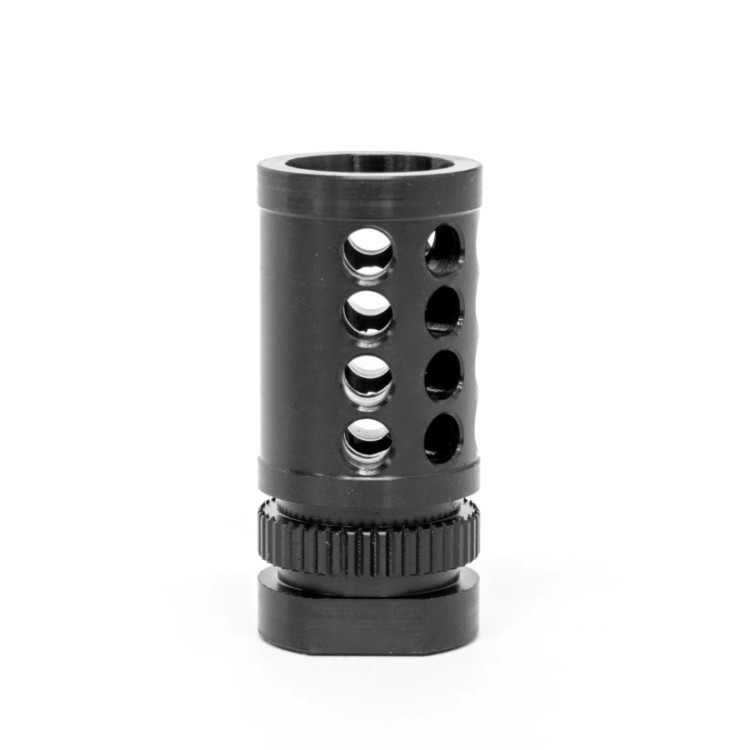 Дульне гальмо-компенсатор GrovTec G-Nite калібру .223 Rem (5,56/45) виготовлене з міцної сталі, що гарантує довговічність і стійкість до зносу, роблячи його ідеальним вибором для інтенсивного використання. Різьба з кроком 1/2"-28 спеціально розроблена для калібру .223. Це забезпечує надійну і стабільну фіксацію на стволі зброї, що важливо для точності стрільби та мінімізації віддачі. У комплект входить спеціальна шайба, що дозволяє оперативно встановити ДГК без необхідності використання додаткових інструментів.