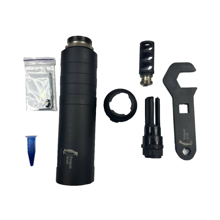 Саундмодератор Penguin Arms Mod. Silent Hill QD-T 223 1/2×28 Титан призначений для використання в бойових умовах. Корпус виготовлений із титану, що забезпечує поєднання малої ваги та високої міцності металу при багаторазових циклах нагрівання й охолодження. Конструкція базується на конфігурації з газовідводом, яка запобігає потраплянню надлишкових газів у обличчя стрільця під час серійної стрільби.