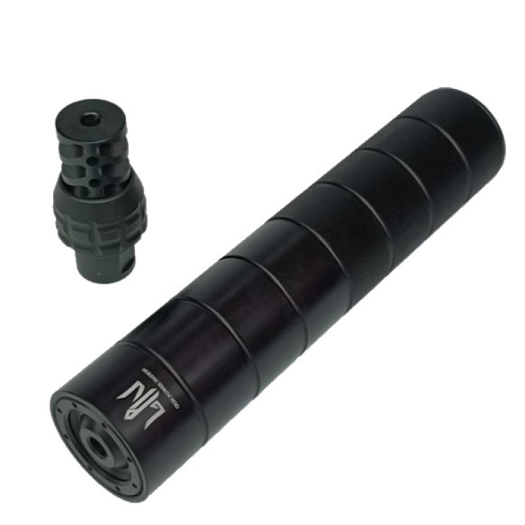 Габарити саундмодератора складають 210х42х42 мм, що робить його компактним та зручним для встановлення на гвинтівку AR-15 з дульною різьбою 1/2"-28. Це рішення підходить для ефективного використання в польових умовах і дозволяє швидко адаптувати пристрій до різних завдань. Покриття виконане з використанням анодування та оксидування, що підвищує стійкість до корозії та агресивного середовища.
