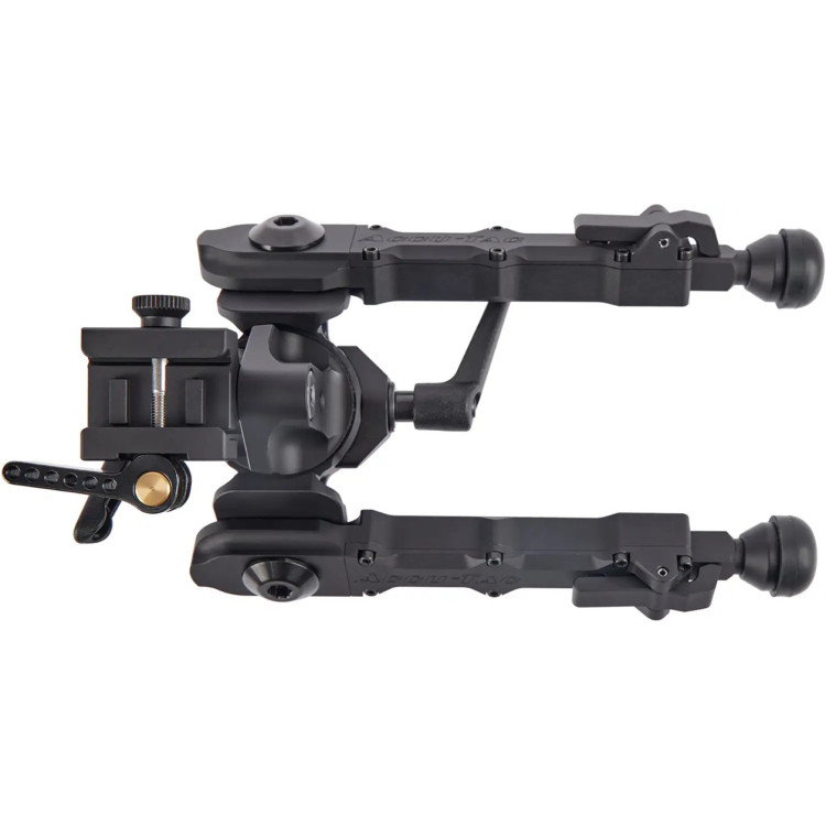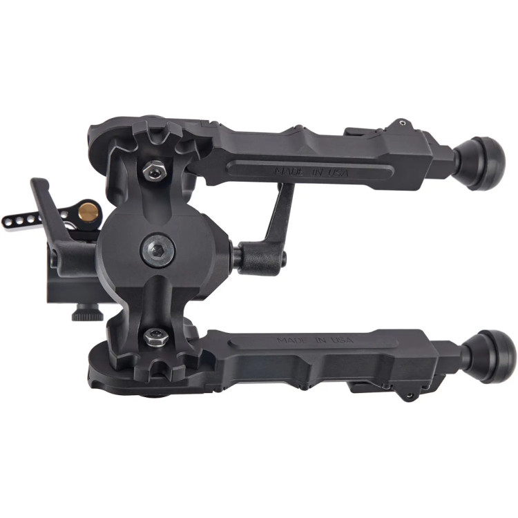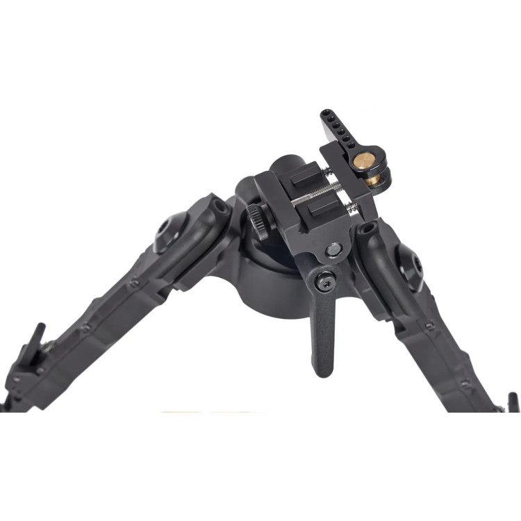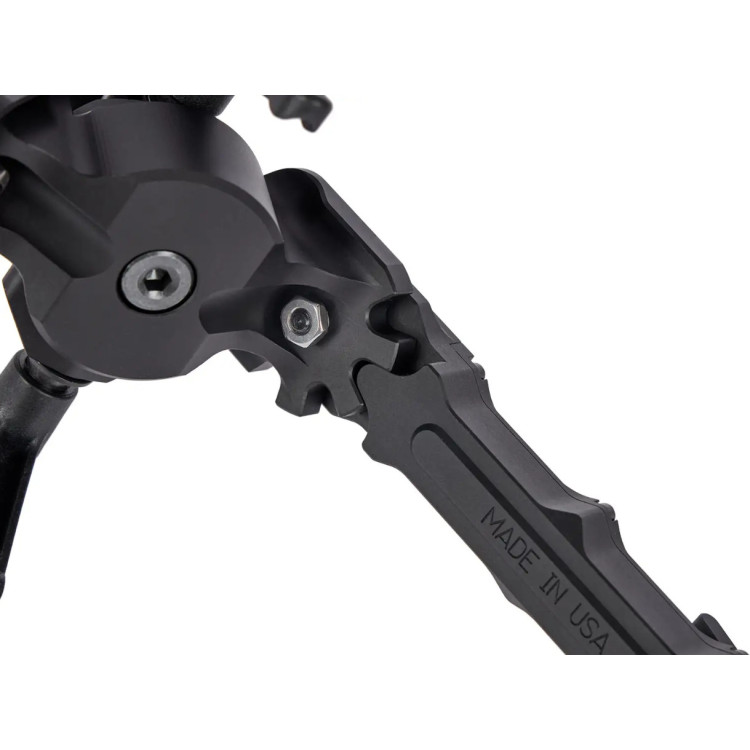 Сошки виготовлені з міцного алюмінію 6061-T6 для чудової міцності та довговічності. Чорне анодоване покриття Type III (MIL-SPEC) надає сошкам стійкість до впливу навколишнього середовища. Система регулювання нахилу з використанням шарнірного механізму "качалка" дозволяє стрілку миттєво адаптувати сошки до необхідного куту нахилу.