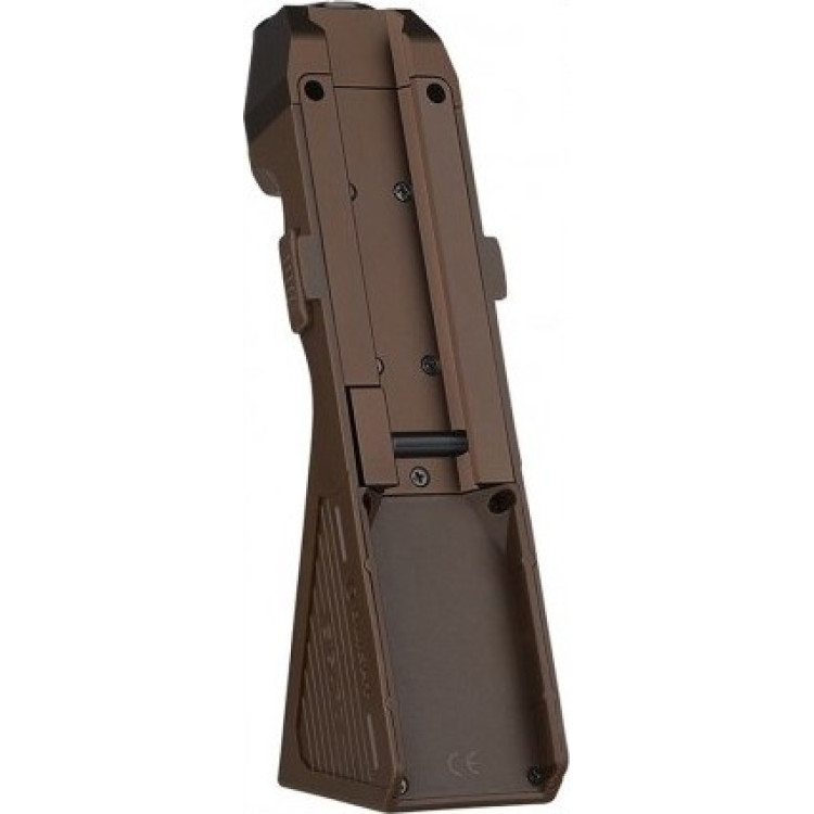 Ліхтар Olight Sigurd. Desert Tan виконаний в оновленому форм-факторі, при проектуванні ставилося завдання зробити стовідсотково тактичний ліхтар. В результаті структура ліхтаря така, що по суті він представляє з себе поєднання і ліхтаря, і упору для ведення вогню, кріплення якого здійснюється на направляючу Пікатінні з фіксацією спеціальним гвинтом. Світловий потік характеризується потужністю 1450 Люмен, Максимальна дальність світла — 240 м. Ліхтар може безперервно працювати максимум 4 години.