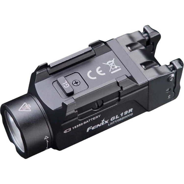 Ліхтар Fenix GL19R — це сучасний перезаряджуваний ліхтар для встановлення на зброю, який забезпечує яскравість до 1200 лм і освітлює на відстань до 210 м. Це потужне рішення підходить як для правші, так і для шульги, завдяки зручному керуванню, яке здійснюється через кнопки з обох сторін пристрою. Існує три режими освітлення, включаючи два рівні яскравості та режим стробоскопа, який ефективно дезорієнтує противника. Завдяки швидкознімному механізму кріплення, Fenix GL19R легко монтується і демонтується на зброю, оснащену направляючими стандартів Glock або Picatinny.