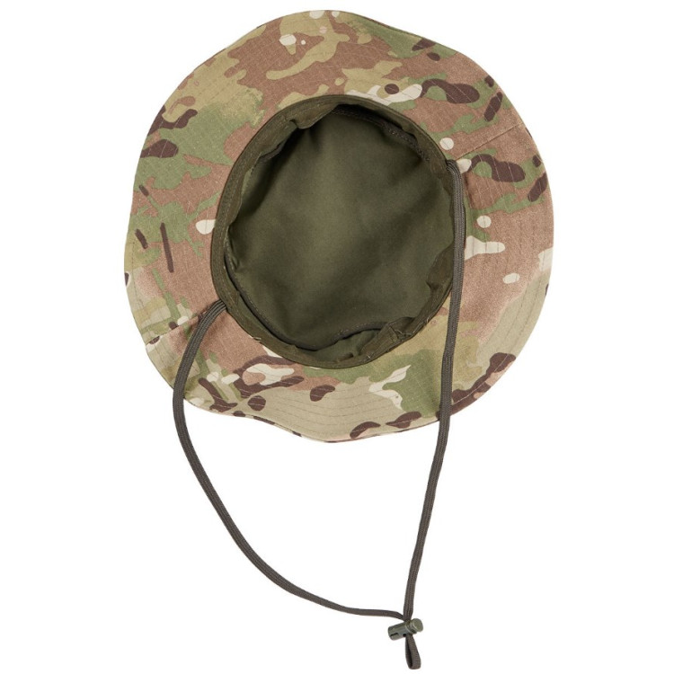 Панама має невеликі поля, які дозволяють захистити від яскравого сонця і забезпечують додаткову тінь для обличчя і шиї. Поля виконані в унікальному мультикамовому кольорі, який є відмінним вибором для любителів стилю і моди. Мультикам — багатогранний і камуфлює колірний візерунок, що складається з різних відтінків зелені, коричневого, пісочного і чорного, що дозволяє панамі поєднуватися з різноманітною одягом і оточенням.