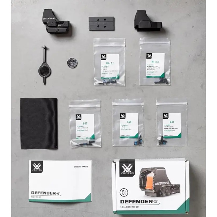 Коліматорний приціл Vortex Defender-XL Micro 5 MOA розроблений для встановлення на пістолети, що використовуються у спортивній, тактичній та розважальній стрільбі. Його конструкція поєднує міцність, високу точність та зручність експлуатації, що робить його придатним для різних сценаріїв використання.