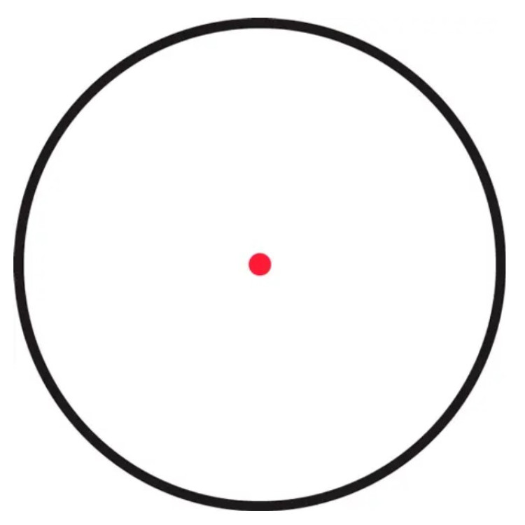 Модель оснащена червоною прицільною маркою розміром 2 MOA. Це компактна точка, яка не надто перекриває ціль і дає змогу точніше працювати по мішені. Позначення MOA означає кутову хвилину — це стандартний спосіб вказати розмір точки в коліматорних прицілах. Практично це означає, що прицільна марка залишається достатньо помітною для швидкого наведення, але водночас не заважає точнішому прицілюванню.