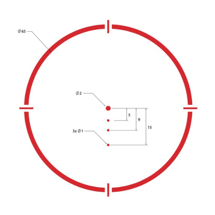 Однією з головних особливостей цього прицілу є можливість вибору одного з чотирьох різних варіантів вбудованої сітки, що робить його універсальним інструментом для різних завдань. Ви можете вибрати: точку, коло-точку, точку з відсічками або коло-точку з відсічками в залежності від того, що вам потрібно.