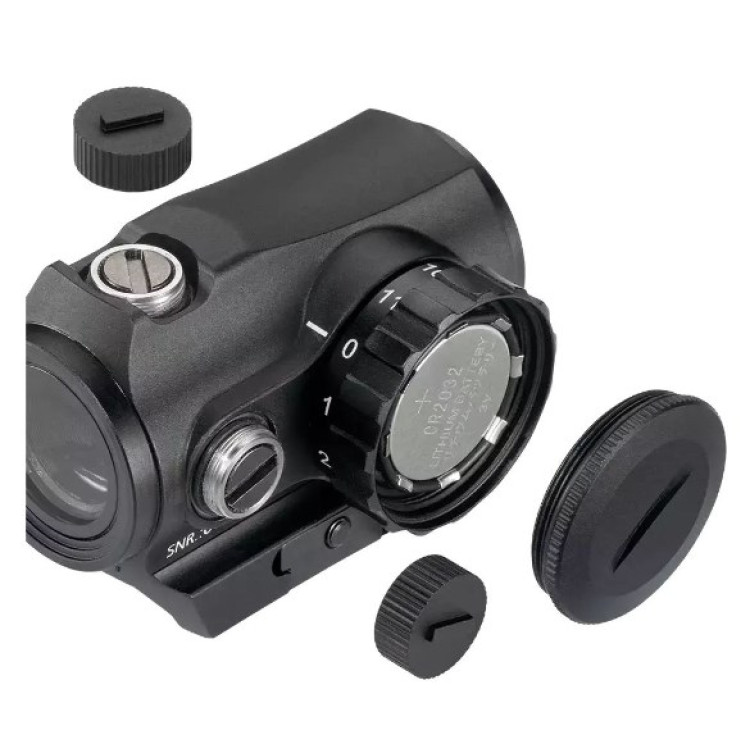 Працює від батарейки CR2032, яка забезпечує до 50 тисяч годин безперервної роботи. Це означає, що ви можете використовувати приціл протягом тривалого часу без необхідності заміни батареї.