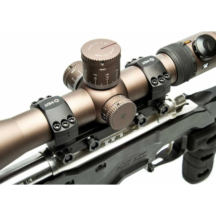 Моноблок MDT Unimount One Piece Tactical. d - 34 мм, виготовлений в довжині Medium, виточений з використанням верстатів з ЧПУ, матеріалом виробництва є сплав на основі алюмінію 6061-Т6 — він вкрай міцний і при цьому має досить легку вагу. Моноблок призначається для прицільних пристосувань, у яких центральна трубка виконана в діаметрі 34 або 35 мм. Напівкільця кріпляться до кронштейна за допомогою 6 гвинтів кожне, таким чином забезпечується максимальна надійність утримання навіть наймасивніших прицільних пристосувань. А крім того завдяки подібному підходу моноблок відмінно витримує серйозну віддачу. Слід врахувати, що для використання спільно з даними моноблоком, виконаним в середній довжині, не підійдуть ультра короткі прицільні пристосування.