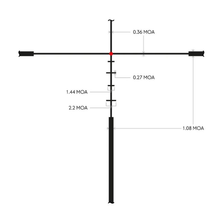 Прицільна сітка LR2 FD є еволюцією класичного шаблону. Конфігурація з потовщеними рамками та вільним центром спрощує захоплення цілі в динамічному режимі. Додаткові мітки забезпечують внесення балістичних корекцій без маніпуляцій із маховиками. Система підсвітки застосовує оптоволоконну технологію: світлодіодний елемент передає випромінювання безпосередньо в площину сітки. Одинадцять градацій інтенсивності світіння створюють видимість маркера за різного зовнішнього освітлення.