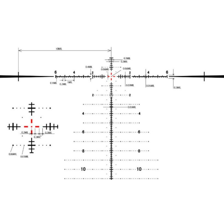 Введення поправок здійснюється за допомогою спеціальних барабанів, вони оснащені системою Zero Stop, володіють ціною кліка в 0,1 MIL. Прицільна сітка FML-3, завдяки чудовій яскравості, контрастності і чіткості передає максимально якісну картинку, завдяки чому стрілок в будь-яких умовах зможе безпомилково визначити відстань до мети. Є 6 режимів регулювання яскравості, за допомогою яких налаштовується оптимальний рівень в будь-який конкретний момент.