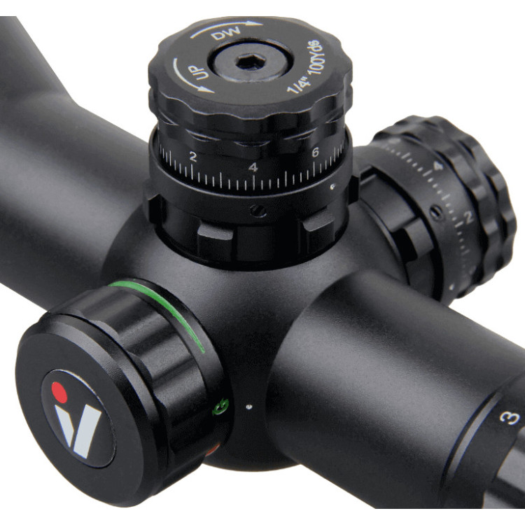 Регулювання 1/4 MOA, що дозволяє точно налаштовувати прицільні показники і робити найдрібніші корекції при стрільбі. Діапазон поправок по вертикалі і по горизонталі 120 МОА, що дозволяє точно налаштовувати кути нахилу і стрільбу як у вертикальній, так і в горизонтальній площинах.