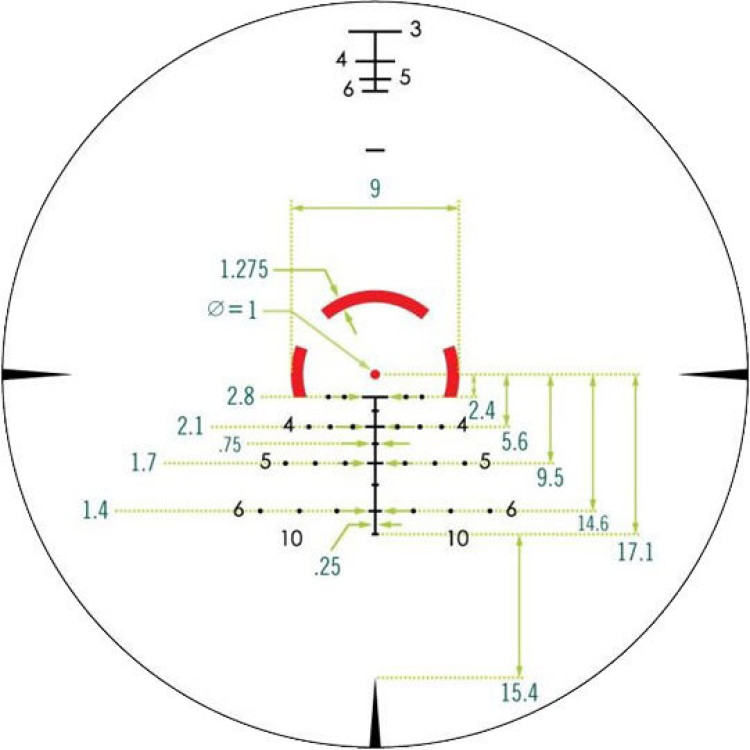 Прицільна марка AR-BDC3 нанесена на скло методом гравіювання, що істотно підвищує термін її служби. Є 11 варіантів інтенсивності підсвічування, а сама прицільна марка проектувалася в першу чергу під калібр 5,56х45 (.223Rem). Структура прицільної марки складає з себе частину кола, яке світиться, що сильно нагадує європейську марку Cirсle-Dot, «заточену» під роботу по цілям, які швидко пересуваються.