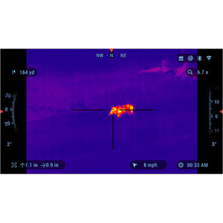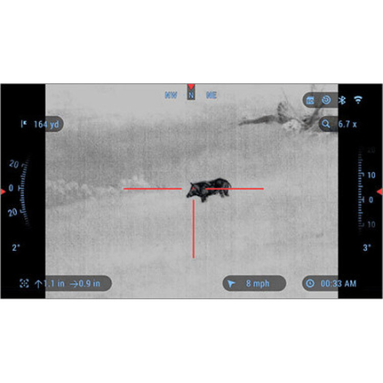 Дистанція виявлення людини вражаюча — до 3,3 км. Приціл оснащений потужним і енергозберігаючим ядром ATN Obsidian IV Dual Core T — це продуктивність на високому рівні, дає можливість швидко реагувати на зміни навколишнього середовища і отримувати чіткі зображення навіть при низькому рівні освітленості.