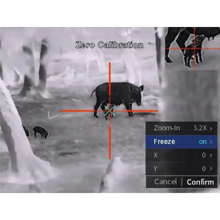 Базове оптичне збільшення становить 2,4x з можливістю цифрового збільшення 1x, 2x та 4x. Частота оновлення кадрів 50 Гц забезпечує плавне зображення в реальному часі. Поле зору 10,4°×7,8° дозволяє ефективно спостерігати за широким простором.