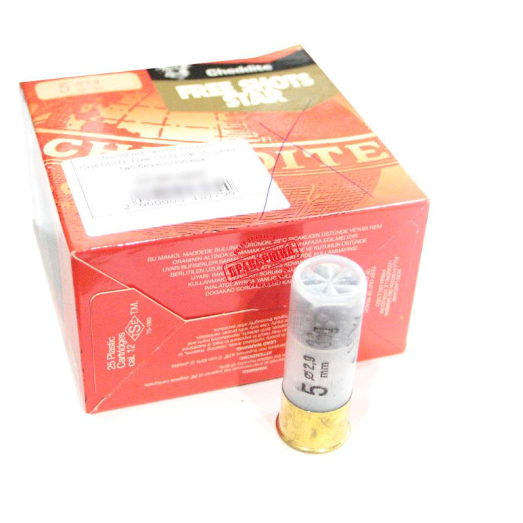 Збройний виробник з Тоскани (Італія) "Società Franco Italiana Esplosivo Cheddite", який почав працювати в 1901 році, є постачальником високоякісних компонентів зброї, присутніх на ринку під торговою маркою "Cheddite". Патрони відрізняються підвищеною надійністю та високоякісними матеріалами. Відмінно збалансований дробовий мисливський патрон CHEDDITE Free Shots Star 12-го калібру чудовий доказ цього. Є оптимальним вибором як для мисливців-початківців, так і для професійних стрільців. В упаковці 25 набоїв, вага патрона 36 грам.- Відгуки