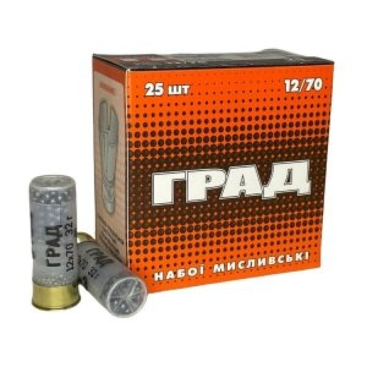 Патрон гладкоствольний Тахо "Град" калібр 12 №1 є боєприпасом для полювання на гусака, дрофу, зайця, лисицю. Патрон показує відмінну швидкість — 400 м/с, що дає чудові результати на коротких та середніх дистанціях. Він оснащений пижом у вигляді контейнера-дисперсанта, що запобігає попаданню пороху в дріб, а також збільшує площу ураження мети. Маса навішування становить 32 гр, номер дробу 1, патрон здатний потрапляти центром дробового осипу в об'єкт, що швидко рухається. Дані патрони можна використовувати з гладкоствольною зброєю калібру 12, що поставляється в картонній коробці.