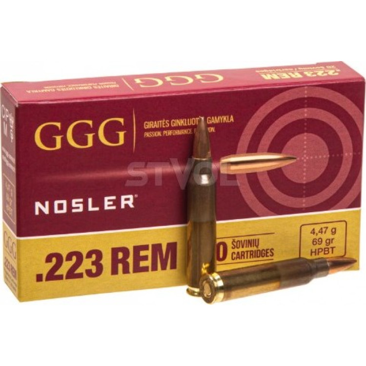 1009157 Патрон нарізний GGG k.223Rem 69g (4,47г.) HPBT NOSLER 20шт./700шт