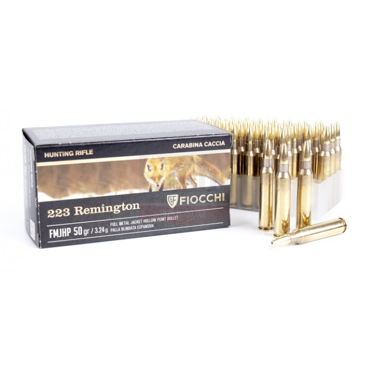 Патрон нарізний Fiocchi калібру .223 Rem (5.56x45) є боєприпасом з цільнооболонковою кулею FMJ (3.24 г, 50 gr), розміщеною в сталевій гільзі із золотим покриттям. Маса кулі (грам/грейн): 3.24 г/50 gr. Такий патрон, найчастіше, застосовують для полювання на дрібну, а також пернату дичину і для розважально-тренувальної стрільби. Чудово демонструє всі свої показники на середніх дистанціях. Патрон Fiocchi .223 Rem 50gr, FMJ HP має високу початкову швидкість, яка становить 1040 м/с, виходячи з чого буде адекватним вибором для початківців і досвідчених стрільців.