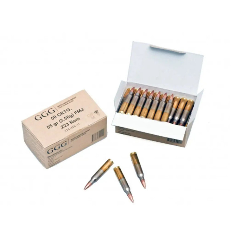 Патрон мисливський нарізний GGG кал. .223Rem 55g (3,6г.) оснащений кулями типу Full Metal Jacket (FMJ), що означає наявність металевої оболонки, яка майже повністю покриває поверхню свинцевого ядра. Така конструкція кулі сприяє зменшенню забруднення ствола зброї та мінімізує його знос.