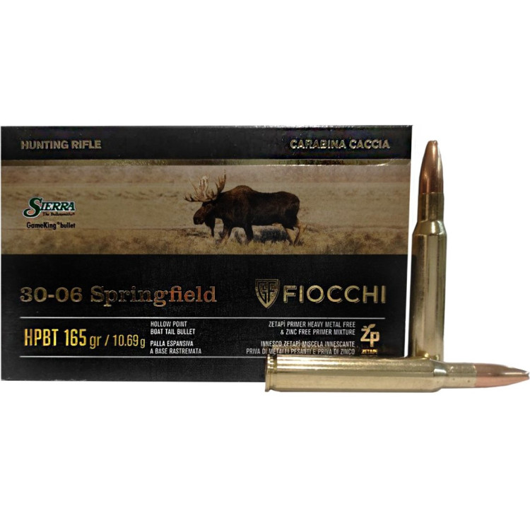 Патрон мисливський Fiocchi .30-06 Springfield HPBT 165GR SGK з кулею HPBT Sierra Game King. Її порожнисте вістря з конічною основою забезпечує неперевершену точність польоту і силу удару. Це вибір справжніх мисливців, які прагнуть до ідеального попадання і максимальної ефективності в полюванні на самих гордих і сильних представників дикої природи. Патрон ідеально підходить для полювання на дикого кабана, сарну, муфлона, червоного оленя і лося — великих і сильних тварин в лісах і полях.