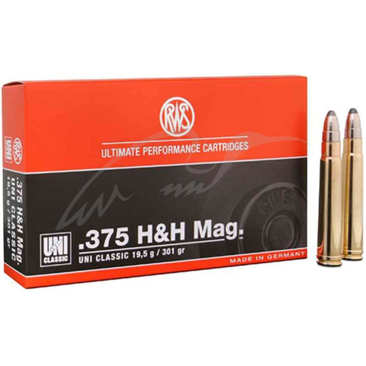 Патрон RWS кал.375 H&H куля UNI Classic маса 19,5 г буде гарною покупкою в контексті сукупності гідних балістичних параметрів та привабливої ціни. Кожна партія цих патронів проходить жорстку перевірку і виключно за підсумками цього патрони вирушають до магазинів, а отже покупець завжди впевнений у відмінній якості. UNI Classic - це особлива конструкція напівоболонкової кулі, яка зроблена для полювання на дичину великих розмірів. Має сердечник із двох частин різної твердості. Такий патрон забезпечує глибоке проникнення незалежно від твердості тканини.