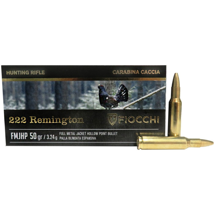 Тип кулі FMJBT (Full Metal Jacketed Hollow Point) забезпечує оптимальну проникаючу здатність. Броньований порожнистий наконечник дозволяє патрону легко проникати крізь щільні шари хутра або пір'я, забезпечуючи надійне ураження цілі. Fiocchi .222 Rem — відмінний вибір для полювання на різні види дичини, такі як лисиця, глухар, бабак.