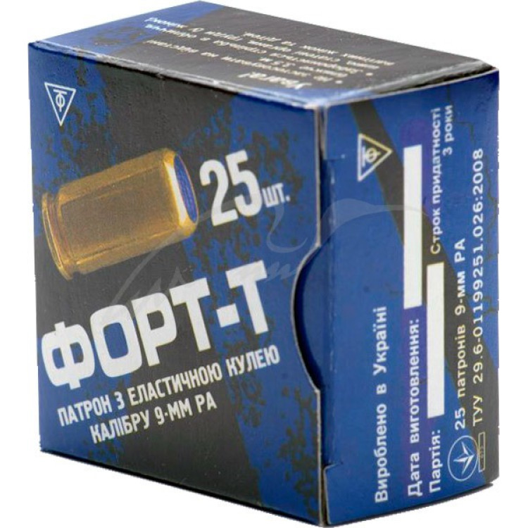 Травматичний патрон Форт "Форт-Т" кал. 9 мм P.A. різ.куля випускається відповідно до жорстких вимог щодо зручності під час стрільби і захищеності стрілка. Усі партії цих боєприпасів проходять строгу перевірку і лише після цього боєприпаси вирушають у роздріб, відповідно завжди гарантується висока якість боєприпасу. Патрони виготовлені з екологічно чистих матеріалів, що сертифіковані в Україні. Основне їхнє призначення — застосування з метою самооборони. Травматичний патрон Форт "Форт-Т" оснащений гумовою кулею травматичної дії.